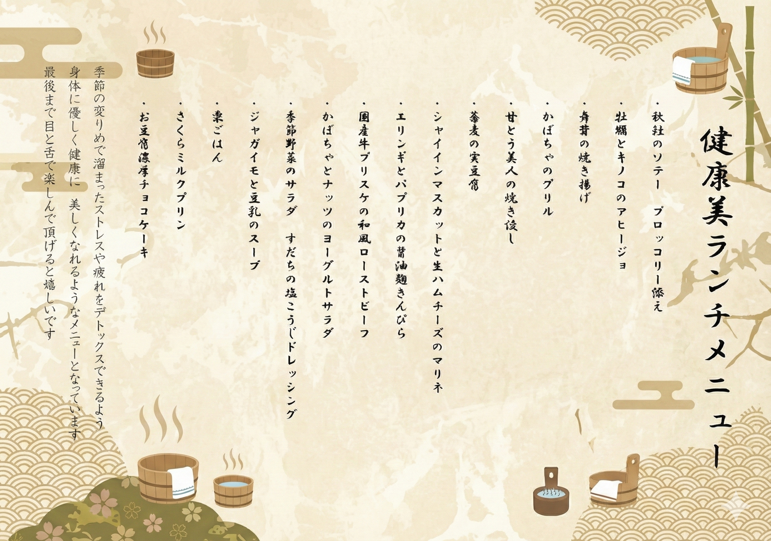 ※ 「健康美ランチメニュー」は、3日前までのご予約制となっております。